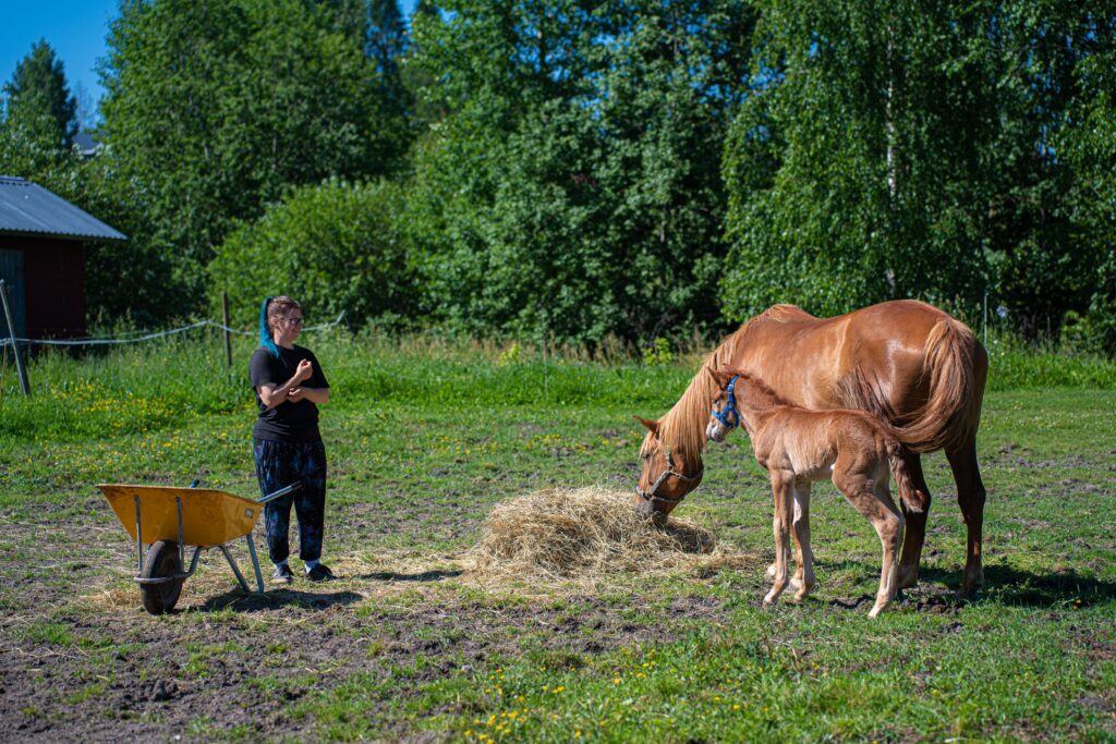 Hevosenhoitajana tallilla työskentelee Katriina “Vekku” Kanerva. Myös maastolenkit hoituvat hänen johdollaan.